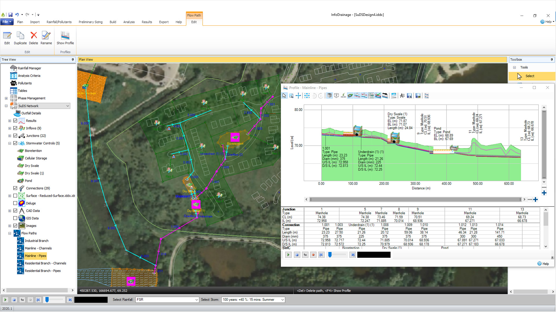 Create designs for traditional and sustainable drainage (SuDS), with tailored reports for compliance